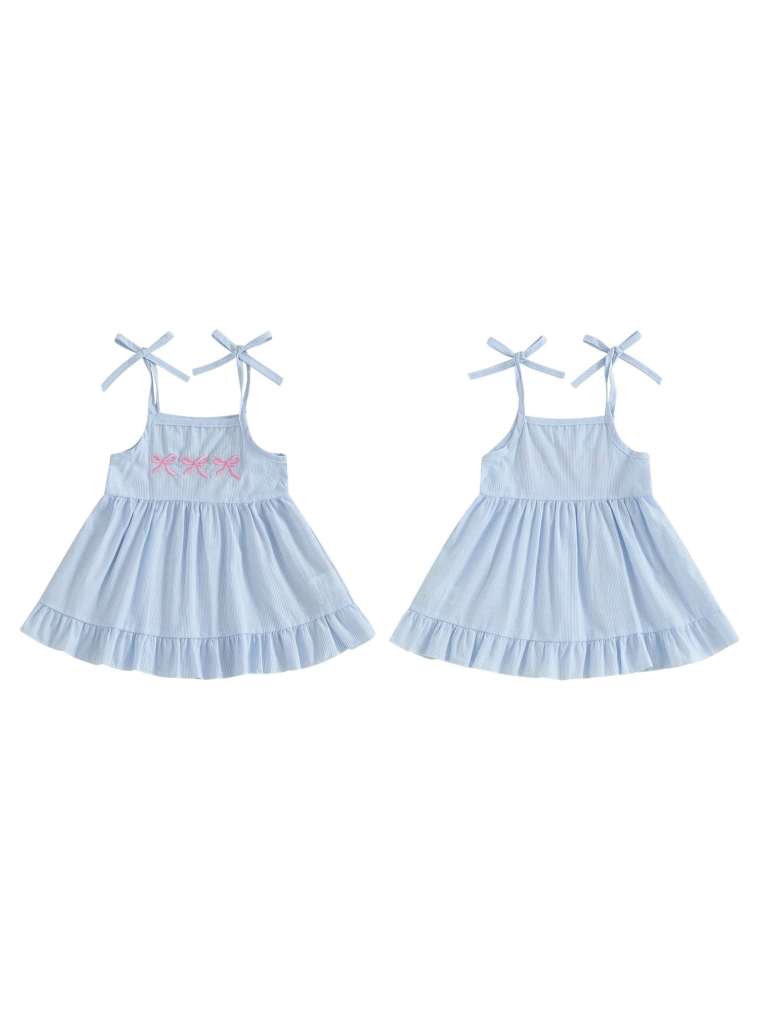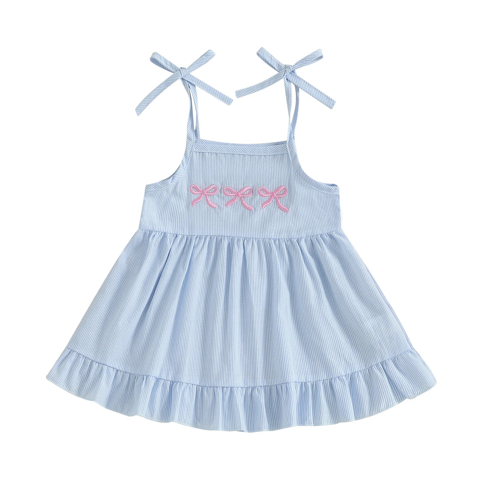 Toddler Girls Dress Bowknot Embroidery Tie-Up Spaghetti Strap Sleeveless Casual Dress Baby Summer Princess Dress