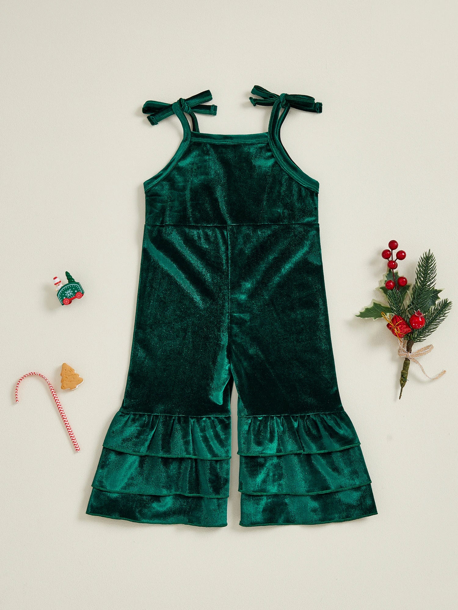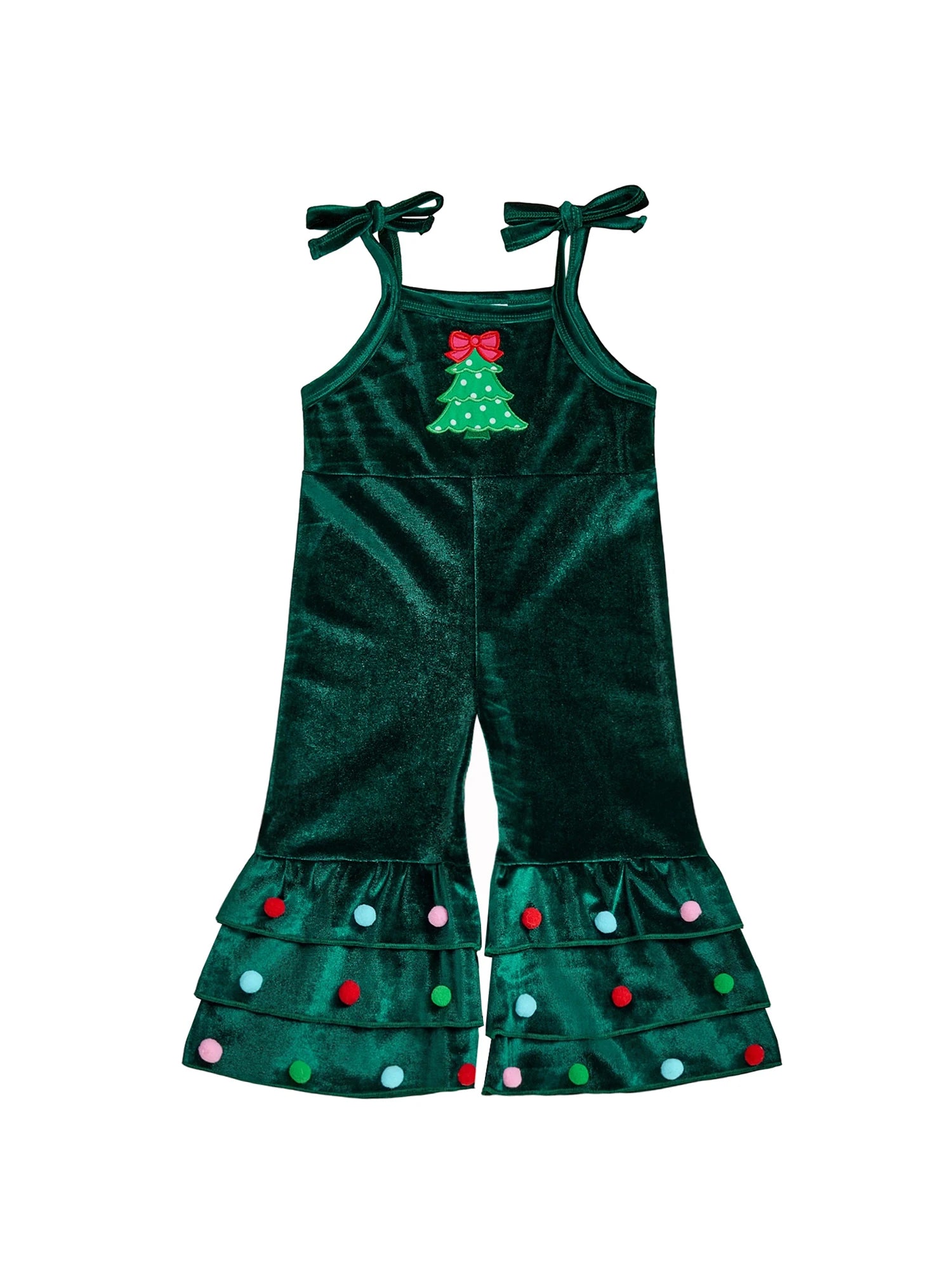 Toddler Baby Girls Romper Fashionable Christmas Tree Embroidery Sleeveless Bell Bottom Jumpsuit