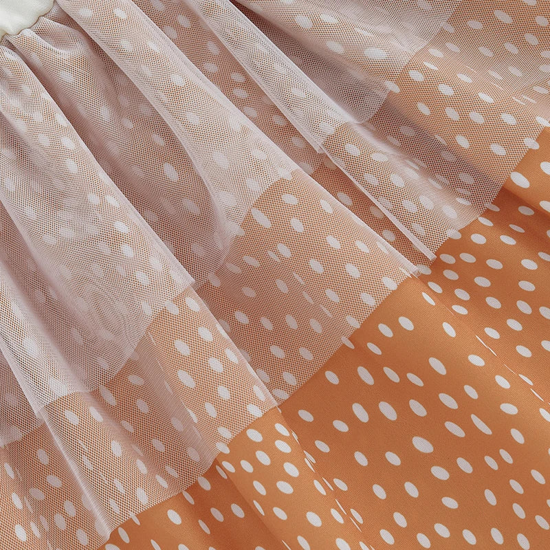 Baby girl summer dresses with cartoon dog pattern, mesh patchwork, round neck and sleeveless, A-line design, make your little girl feel like a real princess