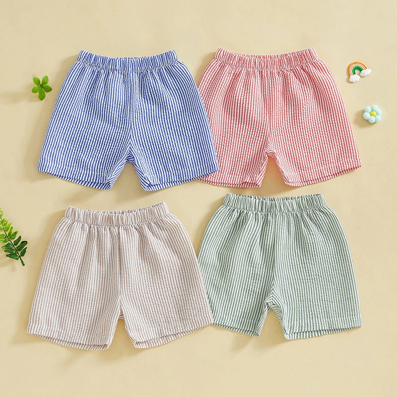 Baby Boy Striped Print Shorts Stylish Elastic Waist Short Pants for Summer Vacation Beachwear Trendy Fashion