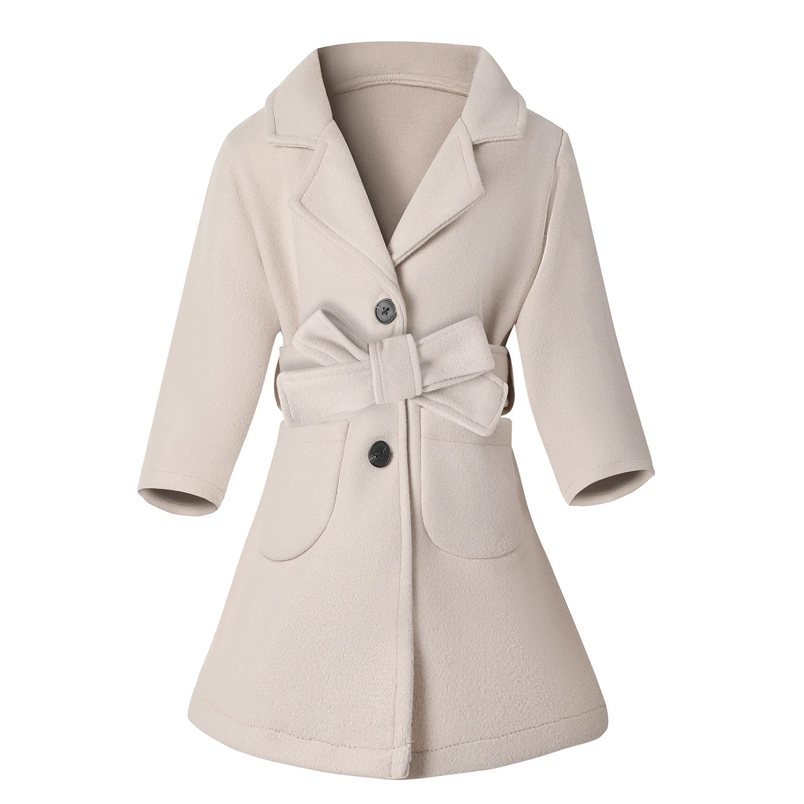 Toddler Girl Wood Coat Solid Color Long Sleeve Lapel Button Down Jacket with Belt Fall Winter Clothes