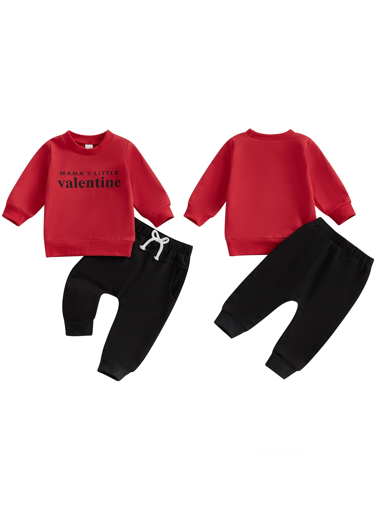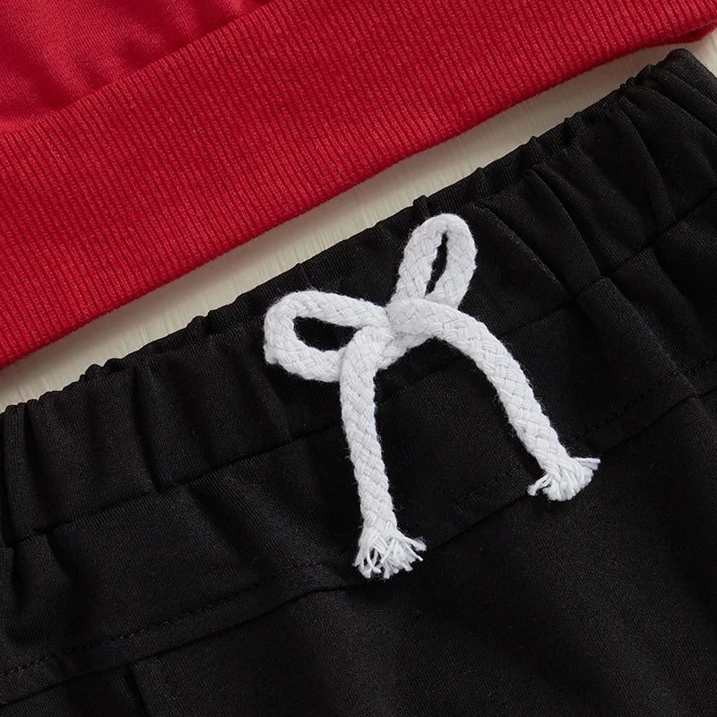 Toddler Boy Spring Outfits Letter Print Long Sleeve Sweatshirt with Solid Long Pants Valentine's Day ClothesSize(cm)