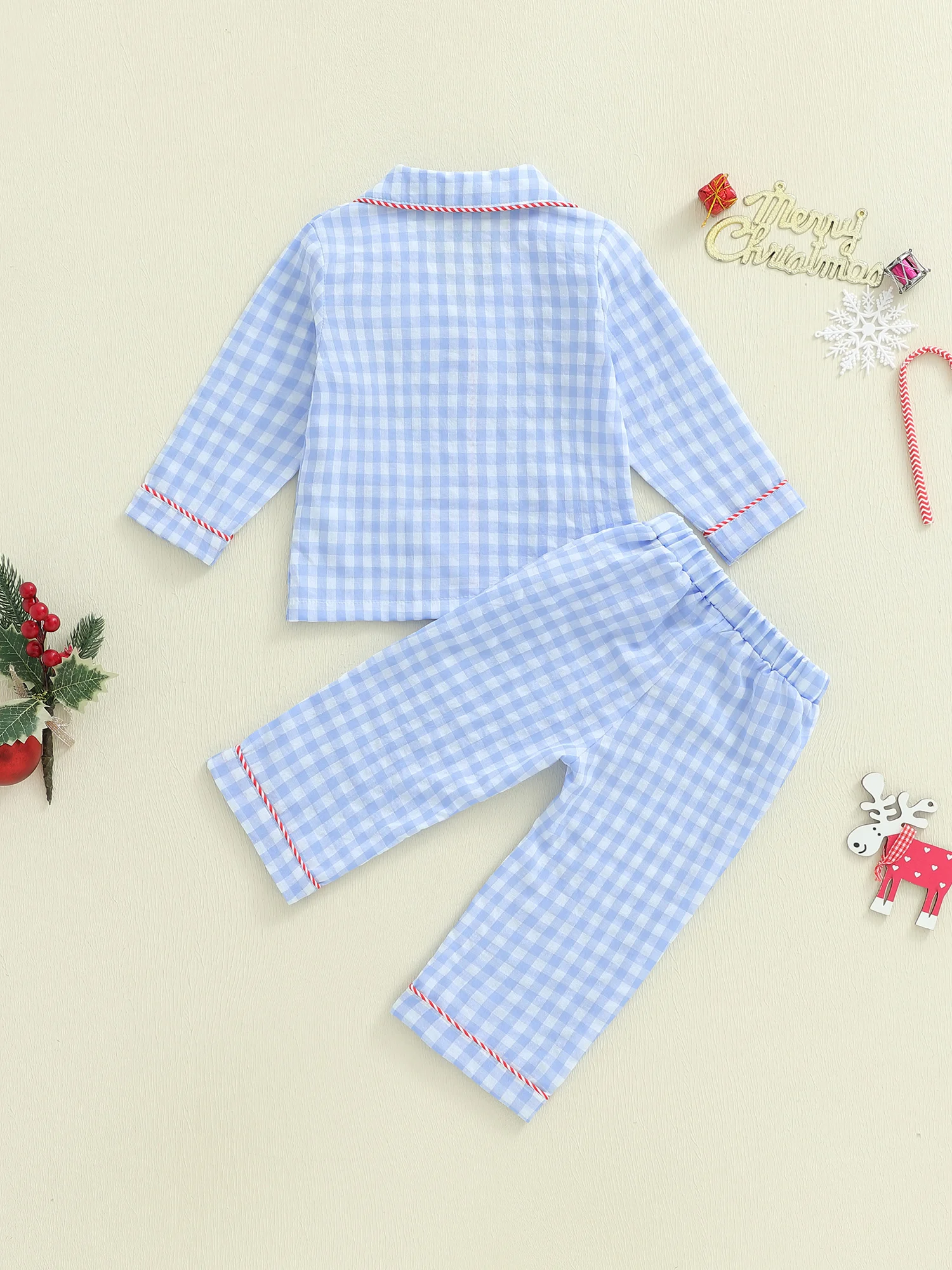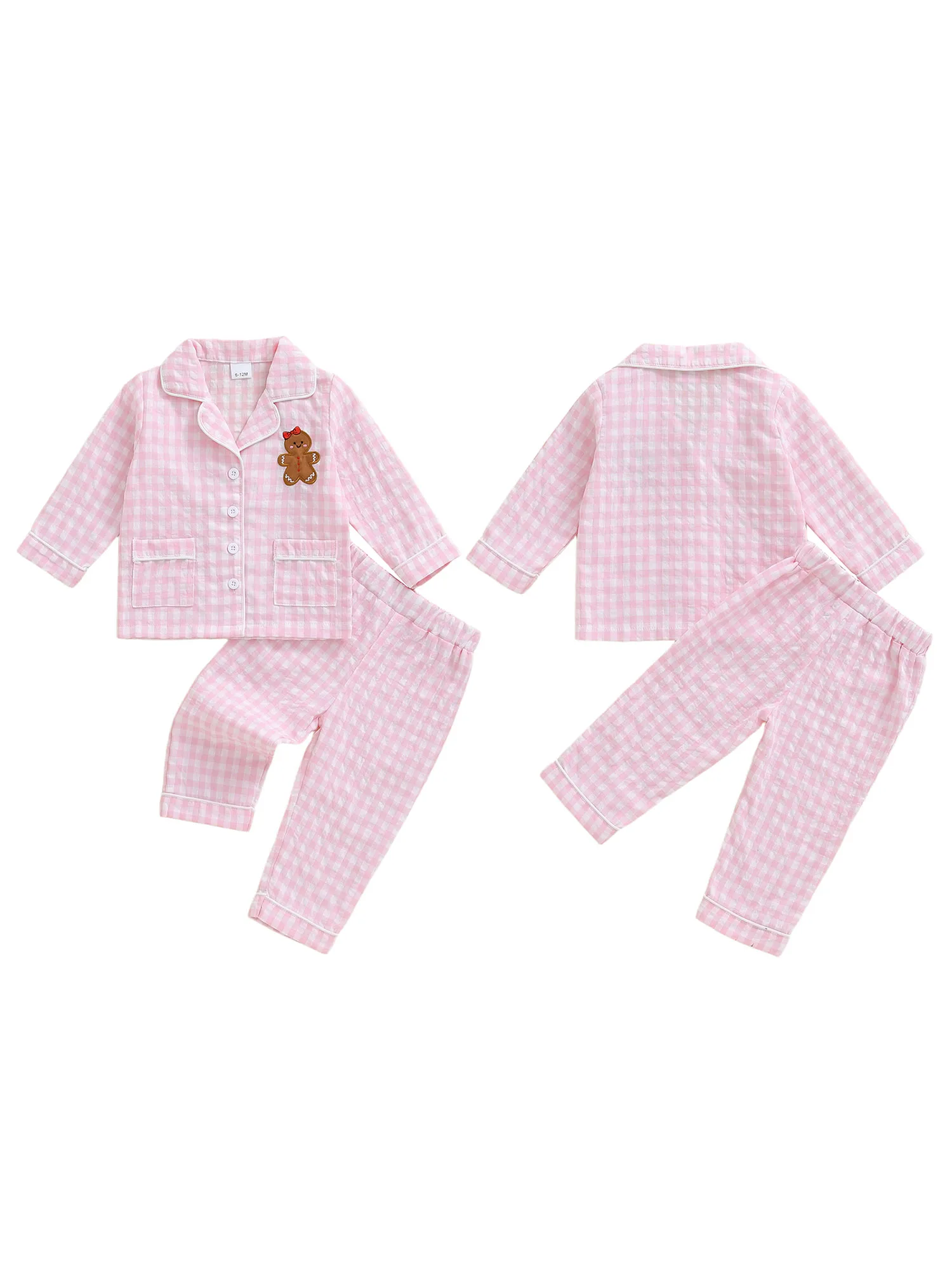 Toddler Girl Christmas Pajamas Set Plaid Print Lapel Long Sleeve Button Down Tops with Pants SleepwearSize(cm)