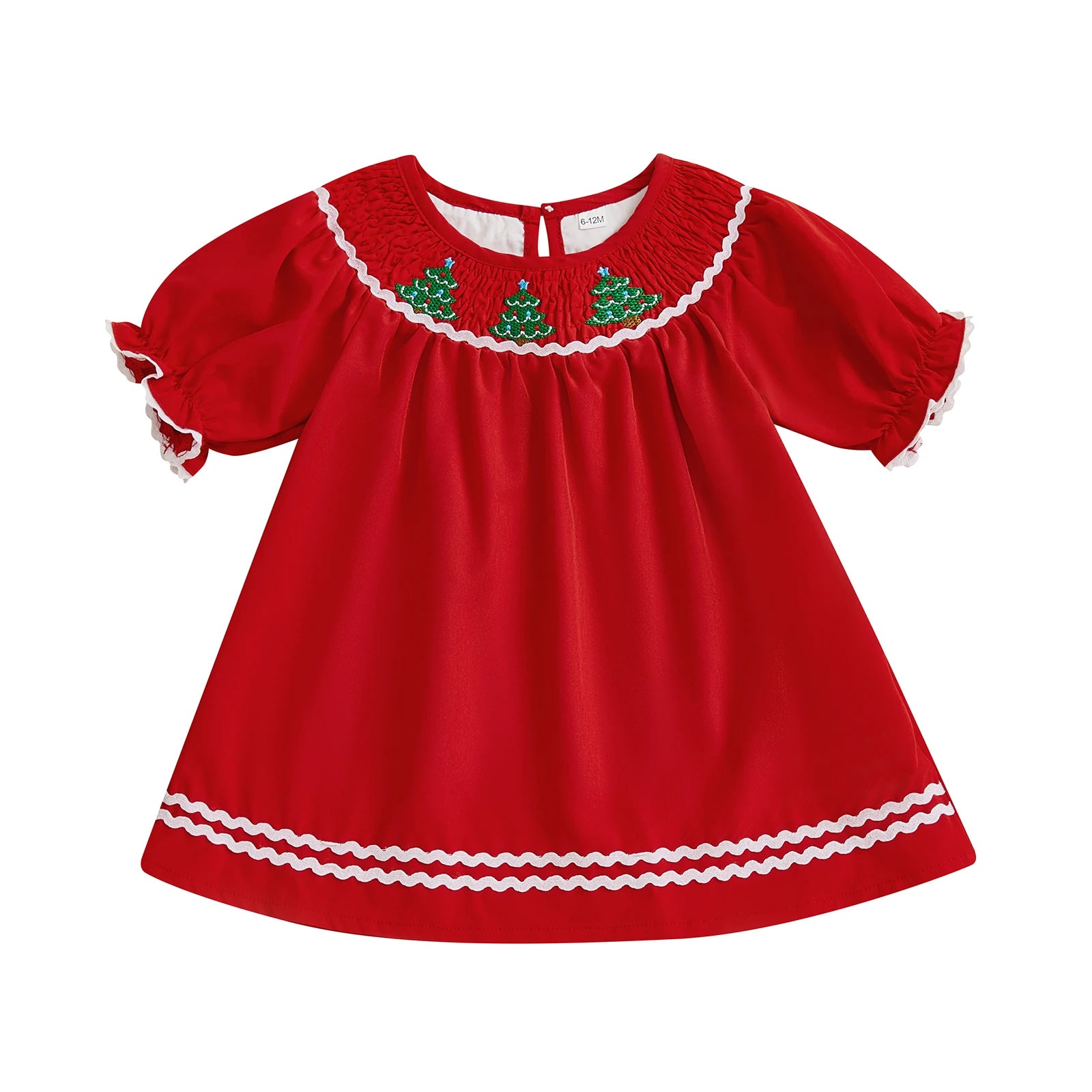Christmas baby clothes; Toddler girl party dress; Little girl party dresses with Christmas embroidery, smocked round neckline, short sleeves, A-line design; Elegant and fashionable, make your child more lovely