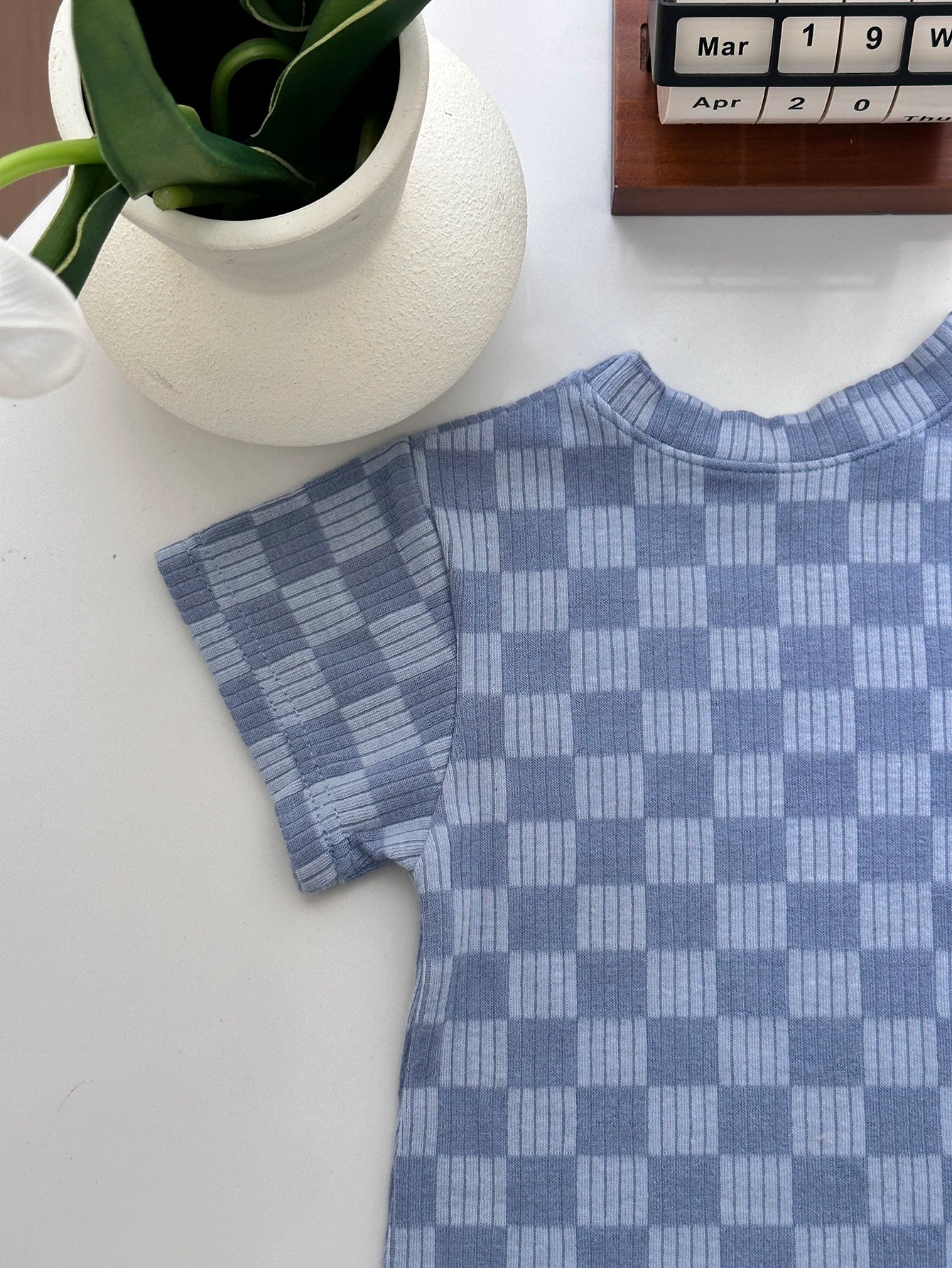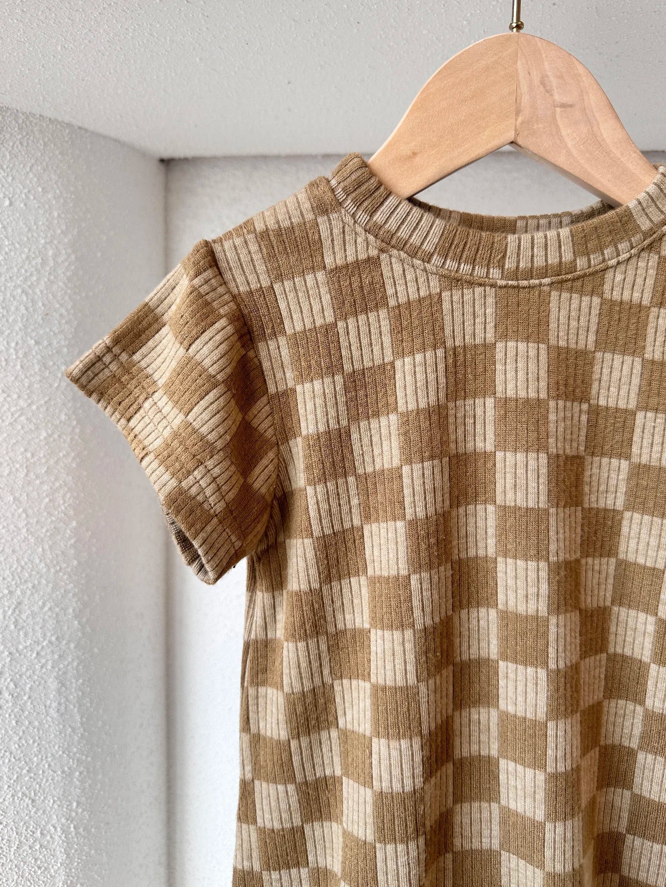 Retro summer toddler bodysuit short sleeved plaid jumpsuit neutral baby romper clothes