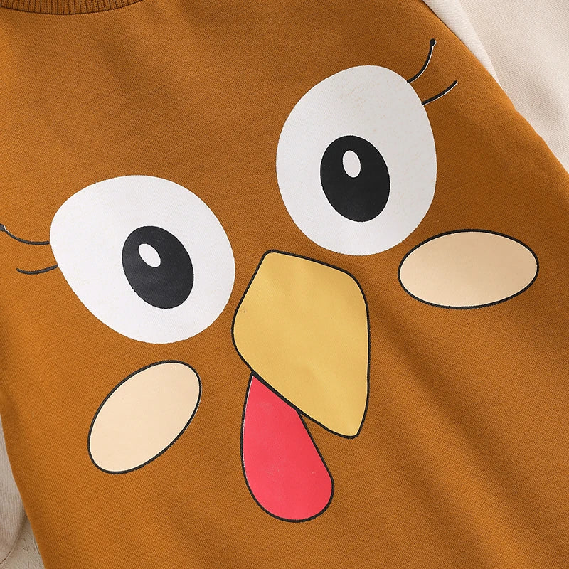 Baby Girl Boy Thanksgiving Outfit, Turkey Print Round Neck Long Sleeve Full Length Romper Hat 2 Piece Set